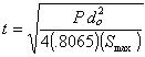 Smax = Maximum stress (approx. 7 to 1 safety factor) 1000 PSI